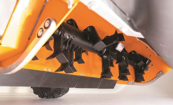 - Surfendes Schlegelmähwerk: Passt sich Unebenheiten an und macht senkrechte Ausweichbewegungen bei Geländeunebenheiten mit. Leichte Höhenverstellung durch Federunterstützung.
