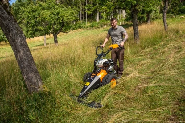- Hydrostatischer Radantrieb: Stufenlose Geschwindigkeitsregelung mit einer Einzelradkupplung für präzise Steuerung.