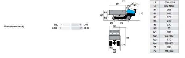 Geschwindigkeit (km/h) V1: 1,6 – V2: 3,6 / R1: 1,4 – R2: 3,4