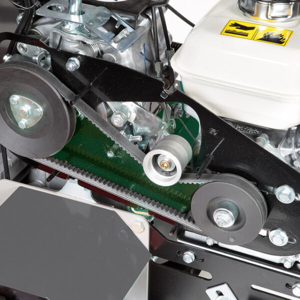 - Keilriemen: Der Keilriemen mit automatischer Feststellbremse dient beim Loslassen des Steuerhebels der Sicherheit des Anwenders.