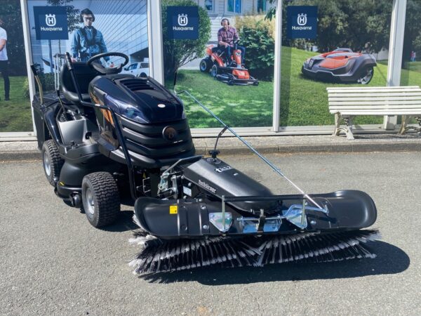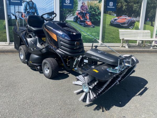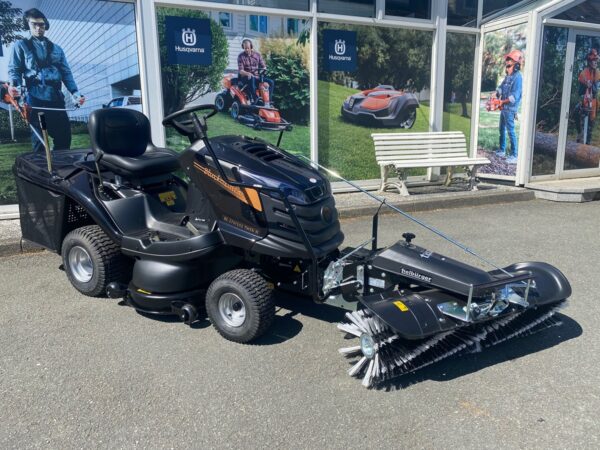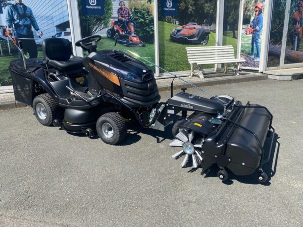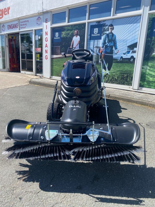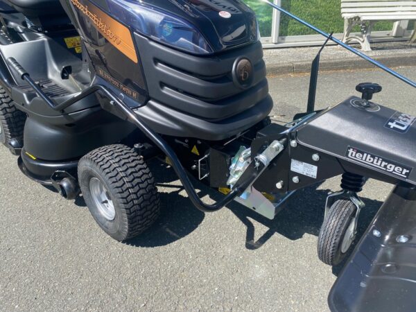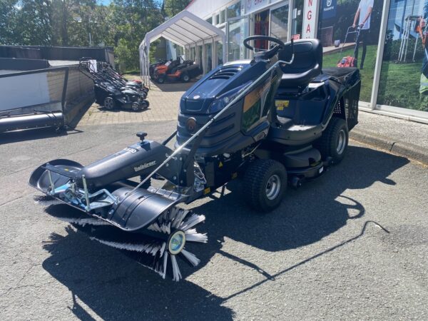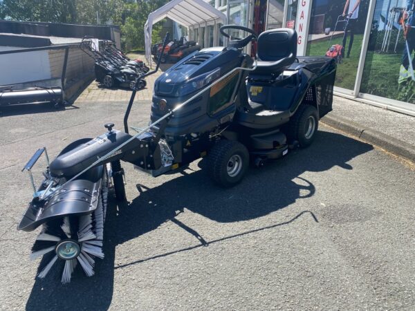 Der Black Edition BL 270/102 Twin H Rasentraktor von Efco mit Kehrsystem Tielbürger TK520 eignet sich hervorragend für die Rasenpflege großer Gärten und Gartenanlagen.
