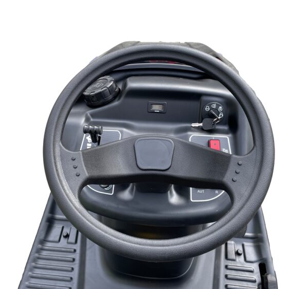 • Mähdeck: 102 cm breites Mähdeck mit zwei Messern und 4 Mähwerksrollen
