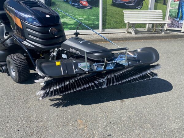 Besonderheiten Schnellverriegelung, Hochleistungsgetriebe, wartungsfreier Keilriemenantrieb, Parallelogramm-Anhebung mit automatischer Antriebskupplung, Kehrbürsten mit Kunststoffkern, witterungsbeständig, luftbereiftes Stützrad, zentrale und stufenlose Stützradeinstellung