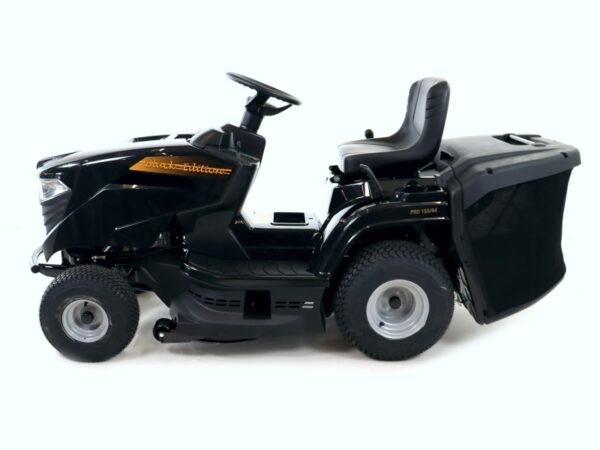 Der neue Black Edition® Rasentraktor PRO 155/84 hat ein modernes Design und eignet sich für Einsteiger genauso wie für fortgeschrittene Anwender. Mit einem STIGA-Benzinmotor, einem 84 cm breiten Mähdeck und einem 200 Liter Heckfangkorb ist er bestens ausgestattet. Das Schaltgetriebe mit 5 Vorwärtsgängen und 1 Rückwärtsgang ermöglicht flexible Handhabung. Dank der ergonomischen 3-Speichen-Lenkrad und Frontscheinwerfer ist komfortables Fahren und Arbeiten auch bei Dunkelheit möglich.