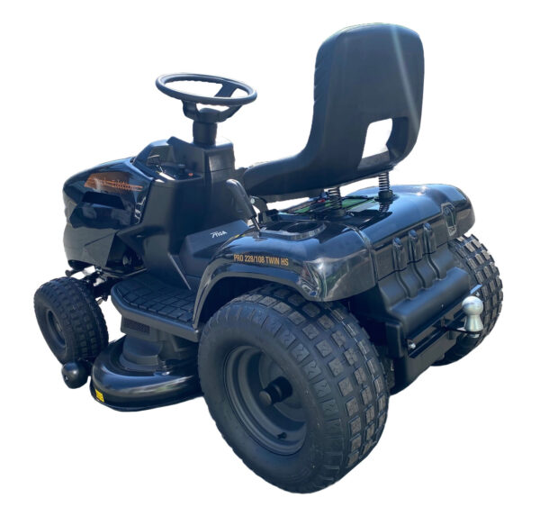 Der neue Rasentraktor Black Edition Pro 228/108 HS mit einer Schnittbreite von 108 cm Seitauswurf und Mulchmähwerk ist mit einem leistungsstarken STIGA 2-Zylinder-Motor ausgestattet. Das Hydrostat-Getriebe lässt sich sehr leicht über das Fußpedal dosieren. Der komfortable Sitz sowie die verstärkte Stahl-Vorderachse sind in der Serie Black Edition PRO standard.