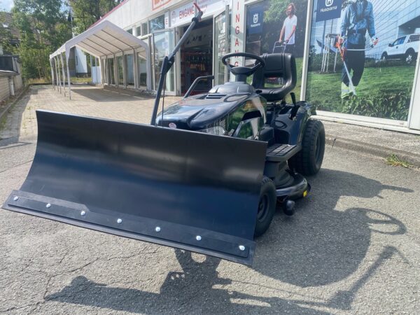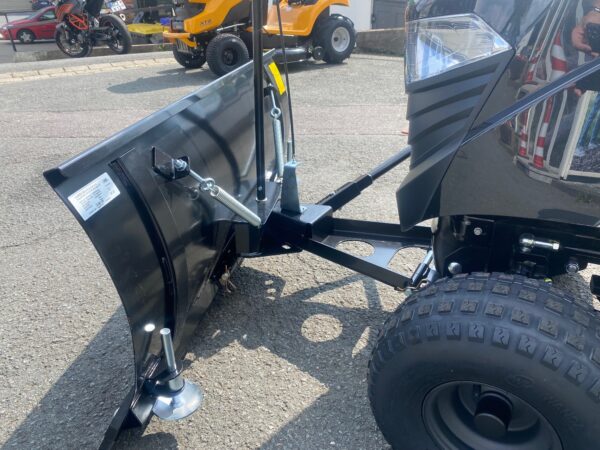 Das Standard Schneeräumschild hat eine Breite von 1,20 m (120 cm) und wird serienmäßig mit einer Gummileiste ausgeliefert. Es verfügt über eine Sicherheits-Klappmechanik und kann vom Fahrersitz aus angehoben und seitlich in 5 Positionen geschwenkt werden.