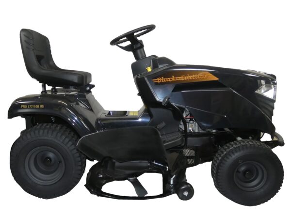 Der neue Rasentraktor Black Edition Pro 177/108 HS aus dem Hause STIGA ist die ideale Lösung für unebenes Gelände, weitläufige Rasenflächen und variierende Grasbedingungen. Dieser leistungsstarke Aufsitzmäher bewältigt alle Aufgaben unter sämtlichen Bedingungen. Der Traktor ist auf härteste Einsatzbedingungen ausgelegt und für Mähflächen von bis zu 6000 m² geeignet. Mit griffigen, aber rasenschonenden Antriebsrädern und einem STIGA-Einzylindermotor mit 452 cm³ Hubraum bietet er robuste Leistung und Zuverlässigkeit.