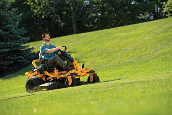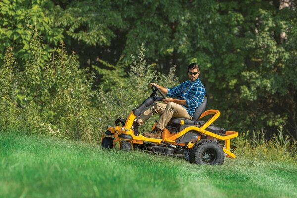 - Maximale Manövrierfähigkeit: Der Mäher verfügt über zwei Antriebshebel, die jeweils separate Radmotoren steuern, um auf der Stelle zu drehen.