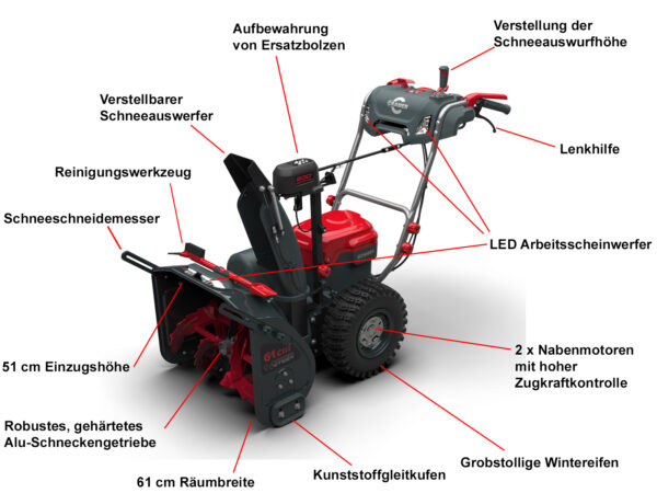 • Zweistufige Schneefräse: Bestens für das Schneeräumen und Auswerfen in 2 Stufen