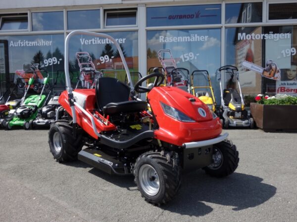 • Erleichterte Bedienung: Elektromagnetische Betätigung der Kupplung, hydrostatisches Getriebe, sperrbares Differential und zentrale Schnitthöheneinstellung.