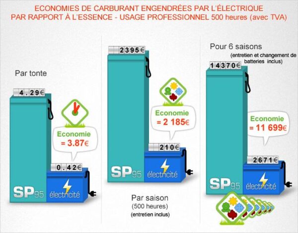 - Wirtschaftlich: Verbrauchskosten < 0,792€/Std. gegenüber 4,34€ für das Benzingerät, Energiekosten, die um 92% verringert sind! Geringere Wartungskosten: kein Riemen, kein Filter, kein Motoröl.