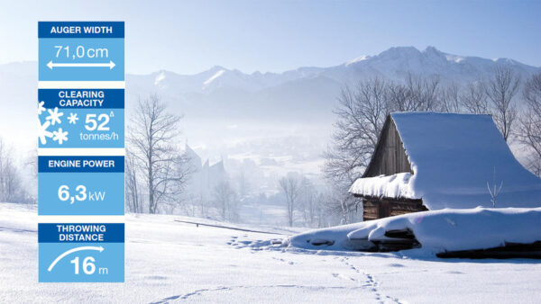 - Fräshöheneinstellung: Schnelle Anpassung des Fräsgehäuses an unterschiedliche Schneebedingungen