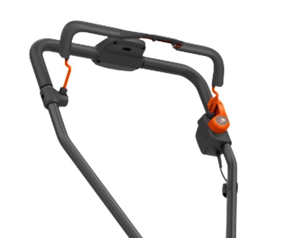 - Hohe Sicherheit: Schlüssel zum Ein-/Ausschalten am Akkuschacht und Bügelsicherung am Holm.