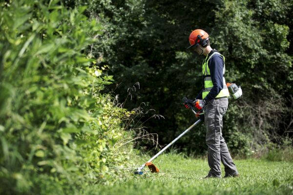 - Kombischutz: Ermöglicht Arbeiten mit Dickichtmesser (Grasmesser) oder Trimmerkopf.