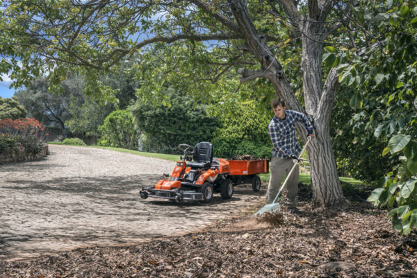 Der Husqvarna Rider 316TX, Modell 2024, ist ein leistungsstarker Aufsitzrasenmäher, der mit LED-Leuchten vorne ausgestattet ist, um die Sichtbarkeit in der dunklen Jahreszeit zu verbessern. Er verfügt über integrierte Schienen auf der Motorhaube für das Anbringen von Zubehör wie Gepäckträgern. Der Rider ist mit einem leistungsstarken Kawasaki FS481V Zweizylinder-Motor ausgestattet und bietet eine Auswahl an Combi-Mähdecks für optionales BioClip® Mulchen oder Heckauswurf. Die Knicklenkung ermöglicht enge Wendemanöver und er ist mit der Husqvarna Connect-App kompatibel, die über Bluetooth® funktioniert.