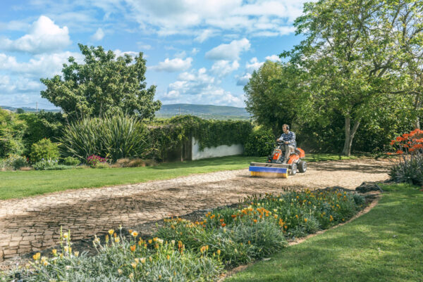 • Frontmontiertes Mähwerk: Bietet hervorragende Zugänglichkeit in Ecken und unter Büschen.
