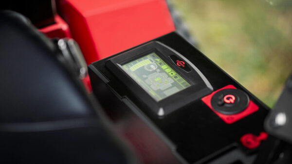 - Überrollschutz (ROPS): Der praktische, zusammenklappbare Überrollschutz schützt den Benutzer und kann in Gebieten mit tief hängenden Ästen auf eine niedrigere Stufe eingestellt werden.