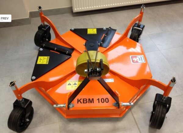 Beschreibung: Entdecken Sie das vielseitige Kombimähwerk KBM 100. Dieses Hecksichelmähwerk bietet drei Funktionen: Heckauswurf, Mulchen und Seitauswurf. Entwickelt für Traktoren mit hinterer Dreipunktaufhängung und einer Leistung von 12 bis 50 PS, ist es ideal für die Rekultivierung und Instandhaltung von Grünflächen.