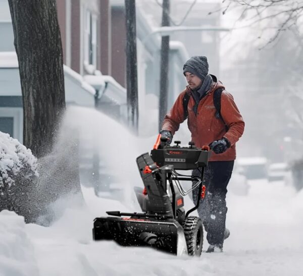 Die 2-stufige Schneefräse von Kress bietet eine professionelle und zuverlässige Lösung für effiziente Schneeräumung, auch bei starkem Schneefall.