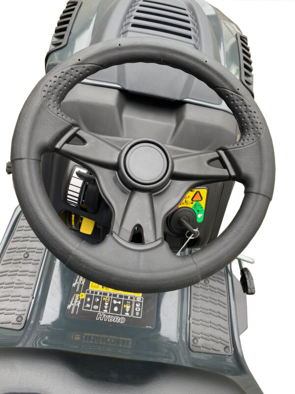 - Hydrostat-Getriebe: Wartungsarm, robust, stufenlos regelbar für Vorwärts- und Rückwärtsfahrt ohne Kuppeln und Schalten.