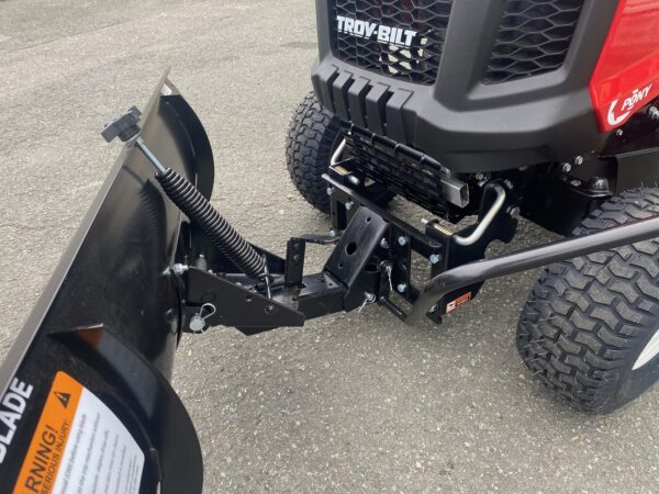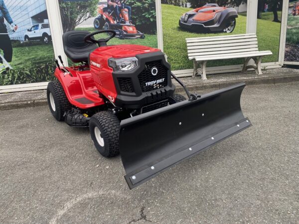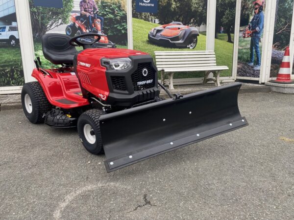 Das Schneeräumschild hat eine Breite von 1,17 m (117 cm) und wird serienmäßig ohne Gummileiste (196-718-678) ausgeliefert. Es verfügt über eine Sicherheits-Klappmechanik und kann vom Fahrersitz aus angehoben und seitlich in 5 Positionen geschwenkt werden.