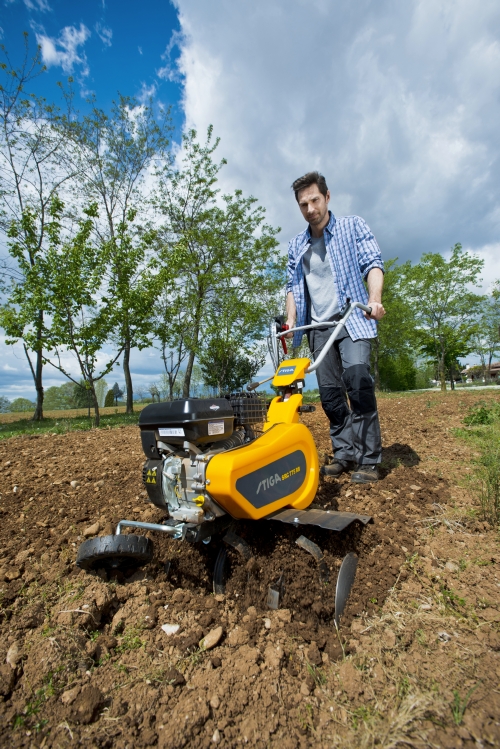 Beschreibung: Die STIGA Benzin Motorhacke SRC 775 RB mit Briggs & Stratton 208 cm³ Viertaktmotor ist ein leistungsstarkes Gerät, das ideal für den Einsatz in Gemüsegärten und größeren Beeten geeignet ist. Mit einer Arbeitsbreite von 75 cm und einer Arbeitstiefe von 26 cm erleichtert sie das Auflockern und Durchmischen fester Erde, sodass der Boden optimal für die Aussaat vorbereitet ist.