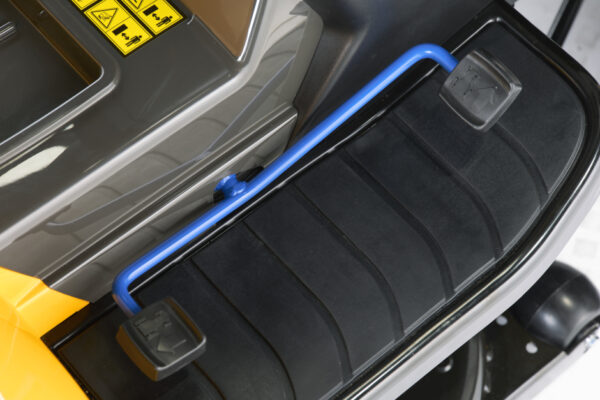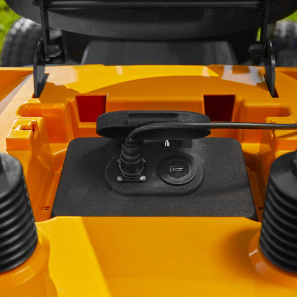 - Elektrische Steuerung: Alle Funktionen werden einfach per Knopfdruck aktiviert – Schnitthöheneinstellung, Entleeren des Fangkorbs und Starten des Mähens.