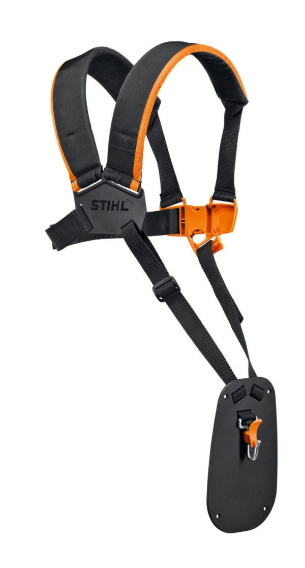 - Doppelschultergurt für kräftesparendes Mähen.