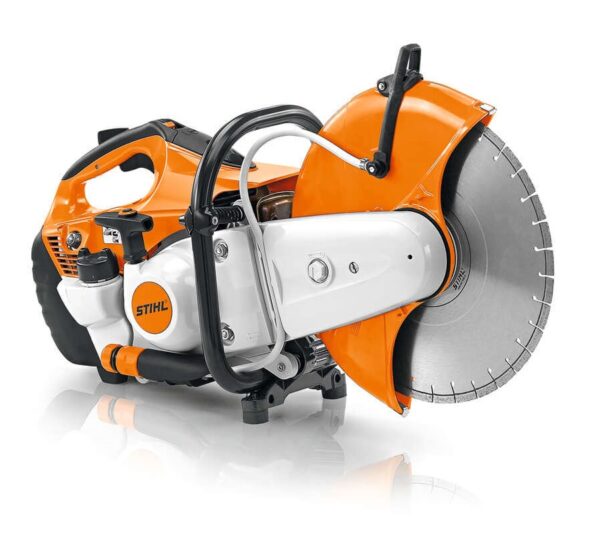 Für 300-mm-Trennscheiben. Die elektronisch gesteuerte Einspritzung sorgt dank nur einer Startposition für eine einfache Inbetriebnahme des Gerätes und für ein perfektes Laufverhalten. In Verbindung mit dem Antivibrationssystem lässt sich das Gerät im Schnitt sehr exakt führen. Elektronische Wassersteuerung für die einfache Dosierung der Wassermenge. STIHL ElastoStart und das Dekompressionsventil machen das Starten spürbar leichter. Hohes Drehmoment, mit sparsamem 2-MIX-Motor.