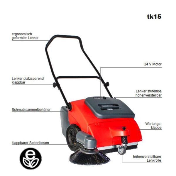 Die neue Tielbürger TK15 Handkehrmaschine ist ideal für das mühelose Reinigen von Innen- und Außenbereichen. Sie eignet sich sowohl für private als auch gewerbliche Einsätze und sorgt stets für saubere Untergründe.